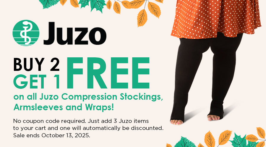 The Juzo Buy 2 Get 1 Free sale is back! Stock up on Juzo compression products and save even more. Just add 3 Juzo items to your cart, and 1 will be automatically free. Sale ends 10/13/25.